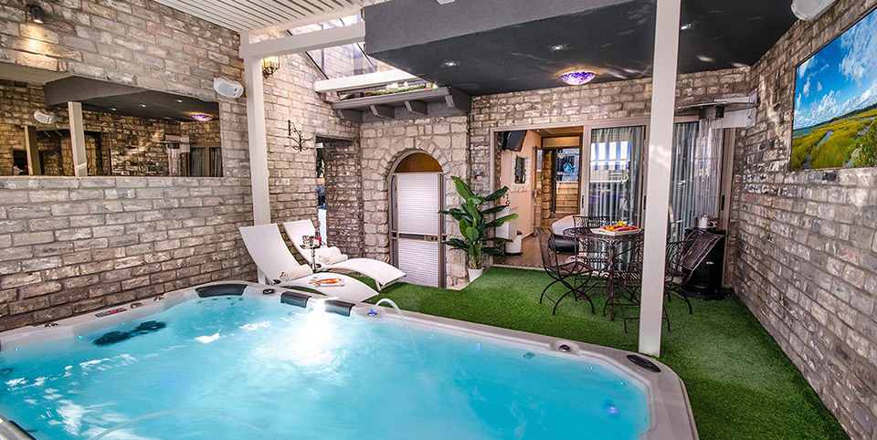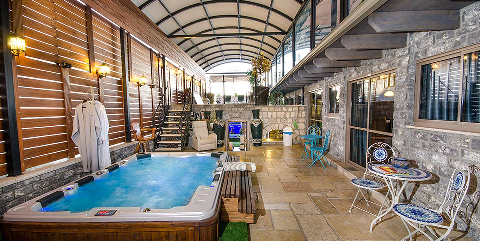 מהחדרים ניתן לצאת למתחם פנאי ונוי משותף ובו ג'קוזי ספא ענק ומפנק הצופה לנוף של צפת העתיקה וההרים הסובבים אותה.
