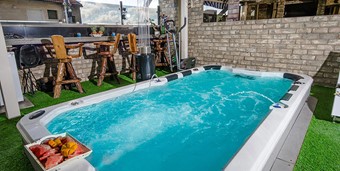 • יציאה למתחם פרטי ומקורה ובו בריכת זרמים מרווחת ומולה מסך טלוויזיה (הבריכה ניתנת לחימום).